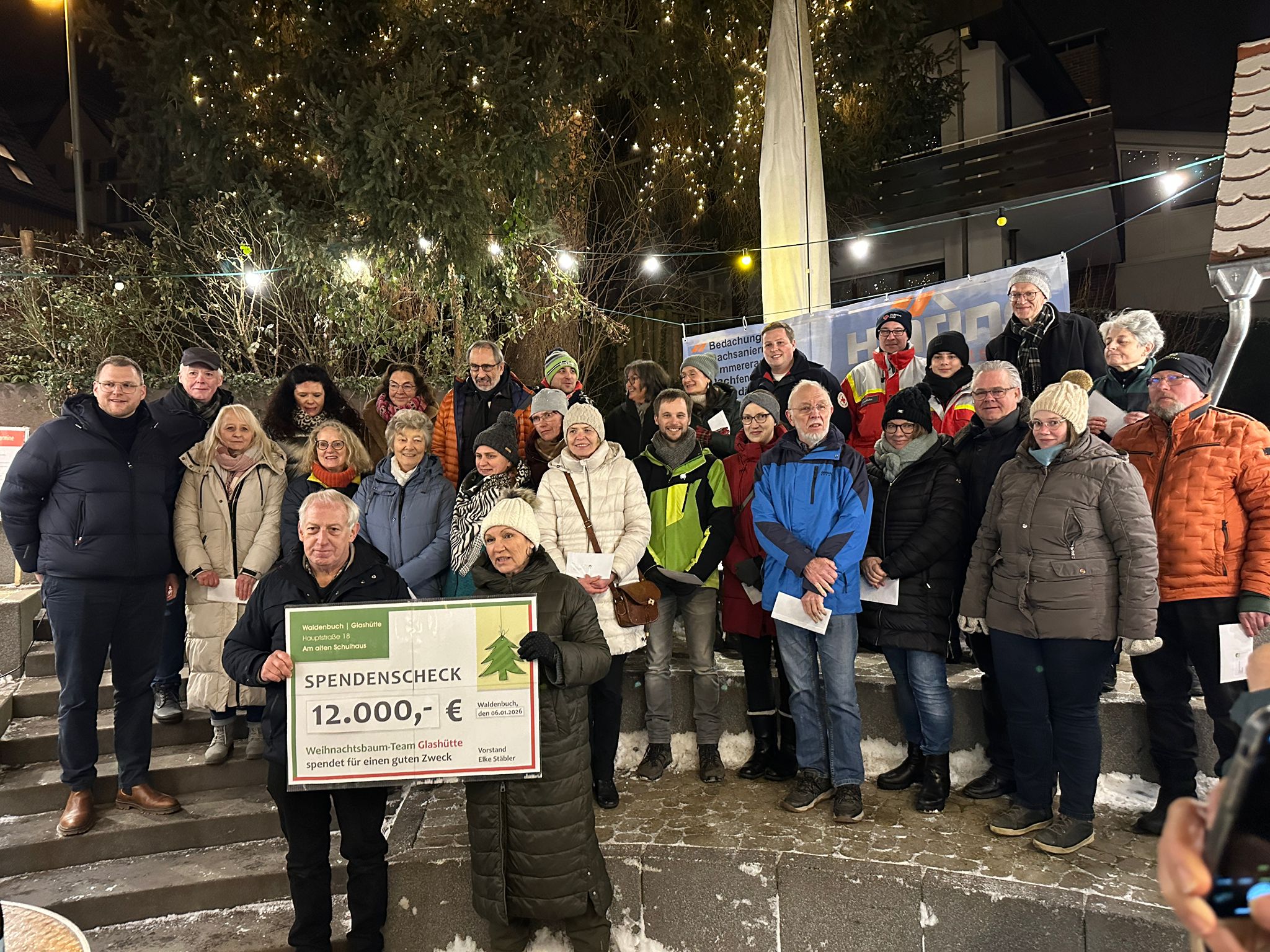Der Glashütter Weihnachtsbaum ist mittlerweile in der Region bekannt und jedes Jahr wieder ein Garant für ein vielfältiges und tolles Programm rund um den herrlich beleuchteten Baum. Zur großen Freude des Musikvereins liegen den zahlreichen Mitwirkenden aber nicht nur Leckeres vom Grill, Heißgetränke jeglicher Art und das weihnachtliche Flair am Herzen, sondern auch der Zusammenhalt unter den Waldenbucher Vereinen. Deswegen wurden auch in diesem Jahr insgesamt 12.000 Euro unter den örtlichen Vereinen verteilt, wovon sich unsere Vorstände Patrick und Ramona einen Teil abholen durften.