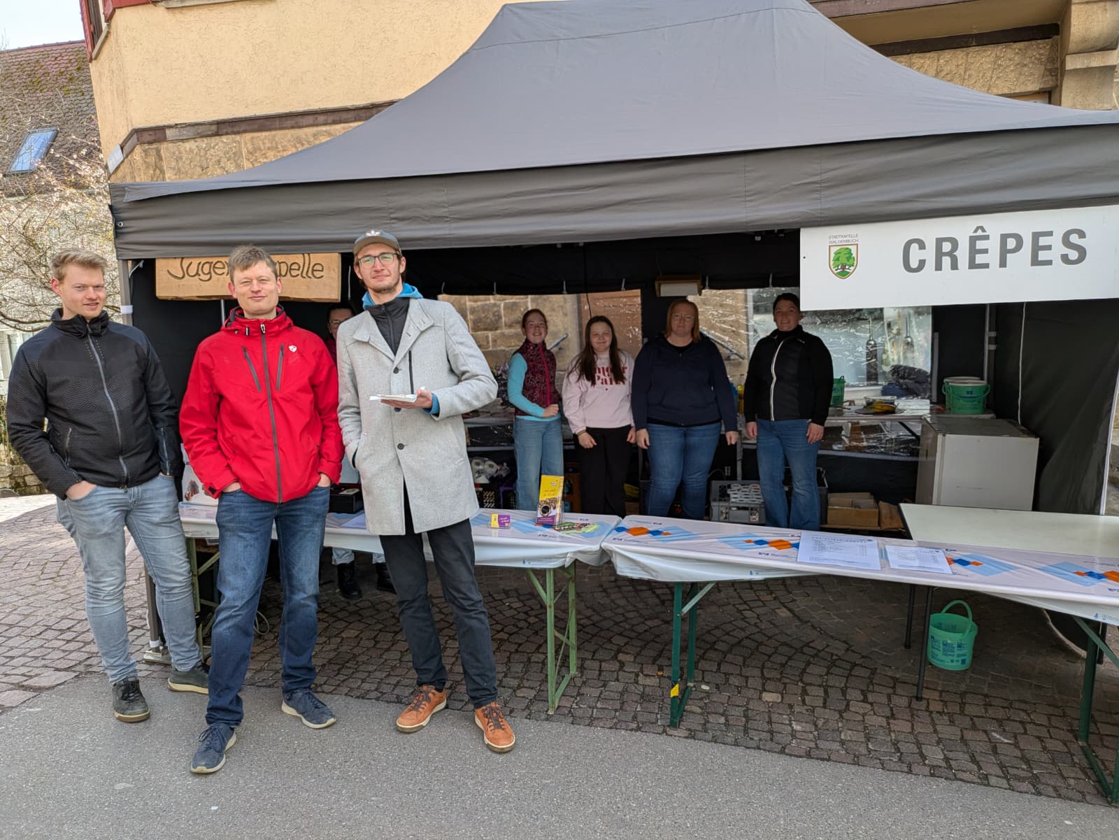Bei rund 6°C Ende März hat man normalerweise wenig Lust, vor die Tür zu gehen. Anders sieht es natürlich aus, wenn man weiß, dass einen leckere, frisch gebackene Crêpes der Jugendkapelle auf dem Waldenbucher Frühlingserwachen erwarten. Dieser Tag ist einer der Pflichttermine im Kalender unserer jungen – und junggebliebenen – Bäckerinnen und Bäckern, die damit die Kasse der Jugendkapelle etwas aufbessern. Danke an alle Mitwirkenden beim Auf- und Abbau, den Schichten an den heißen Eisen sowie der Jugendleitung für die gute Organisation.